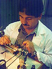 „Eigentlich“, so der Ingenieur, „ist das was wir machen, nur ein verkleinerter Maschinenbau. Das Problem dabei ist: Wenn ich im normalen Gerätebau ein Werkstück mit einer Toleranz von einem hundertstel Millimeter herstellen kann, ist dies ein guter Wert. B ei der Größe unserer Werkstücke ist ein hunderstel Millimeter sehr viel. Man braucht Ideen, um dies zu kompensieren. Äußerst präzise optoelektronische Messtechnik wird hier eingesetzt.“