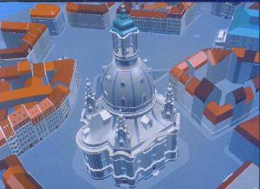 Nun, da es weitgehend fertig ist, kann man von jedem Standort in jede Richtung und auch aus jedem Fenster blicken, kann sehen, ob ein Wiederaufbau des historischen Gewandhauses vom Luther-Denkmal aus den Blick auf das Dinglinger-Haus verstellt. Man kann in Minuten anstelle der historischen Bauten moderne Stahl-Glas-Konstruktionen einsetzen und ihre Wirkung prüfen. Selbst aus den Höfen kann man sehen, von welchem Standpunkt die Kuppel der Kirche sichtbar wird. Und man kann sogar Baupreise vergleichen. Trux hat ermittelt, das die klassische Fassade eines nicht mit reichem bildhauerischem Schmuck, aber mit Sandsteingewände, versehenen Hauses bis zu 40 Prozent günstiger kommt, als die aufwändige Pfosten-Riegel-Konstruktion der Glasfassade. Dabei bringt das Haus trotz der historischen Geschosshöhe von 3,50 m auch nicht weniger Nutzfläche. Und die reich geschmückten Gebäude sind ja eigentlich auch nicht so sehr Gegenstand der Diskussion. Diese sind Leitbau und werden mit ihrem Schmuck wieder errichtet. Der Streit geht in hohem Maße um die – vorsichtig formuliert – minderwertigere Bausubstanz, die es in dieser Region auch gab.